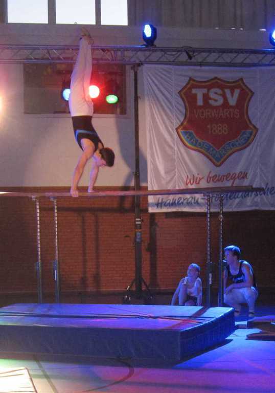 Wir trainieren meistens Barren, Reck, Boden und Sprung. Allerdings sind auch die Ringe und das Pauschenpferd mit im Programm, da diese Geräte gefordert sind, wenn wir an der Kreismeisterschaft teilnehmen.
