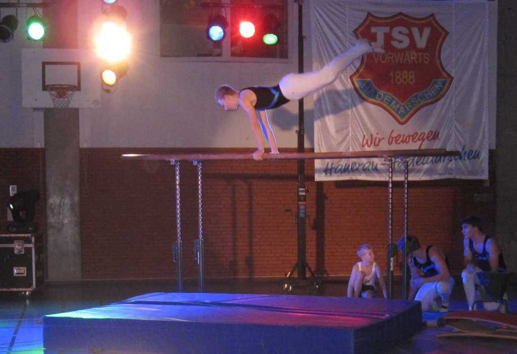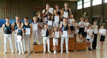 Die Jungen turnten vier Übungen als Auswahl der Geräte Boden, Reck, Barren, Ringe, Sprung und Pauschenpferd.